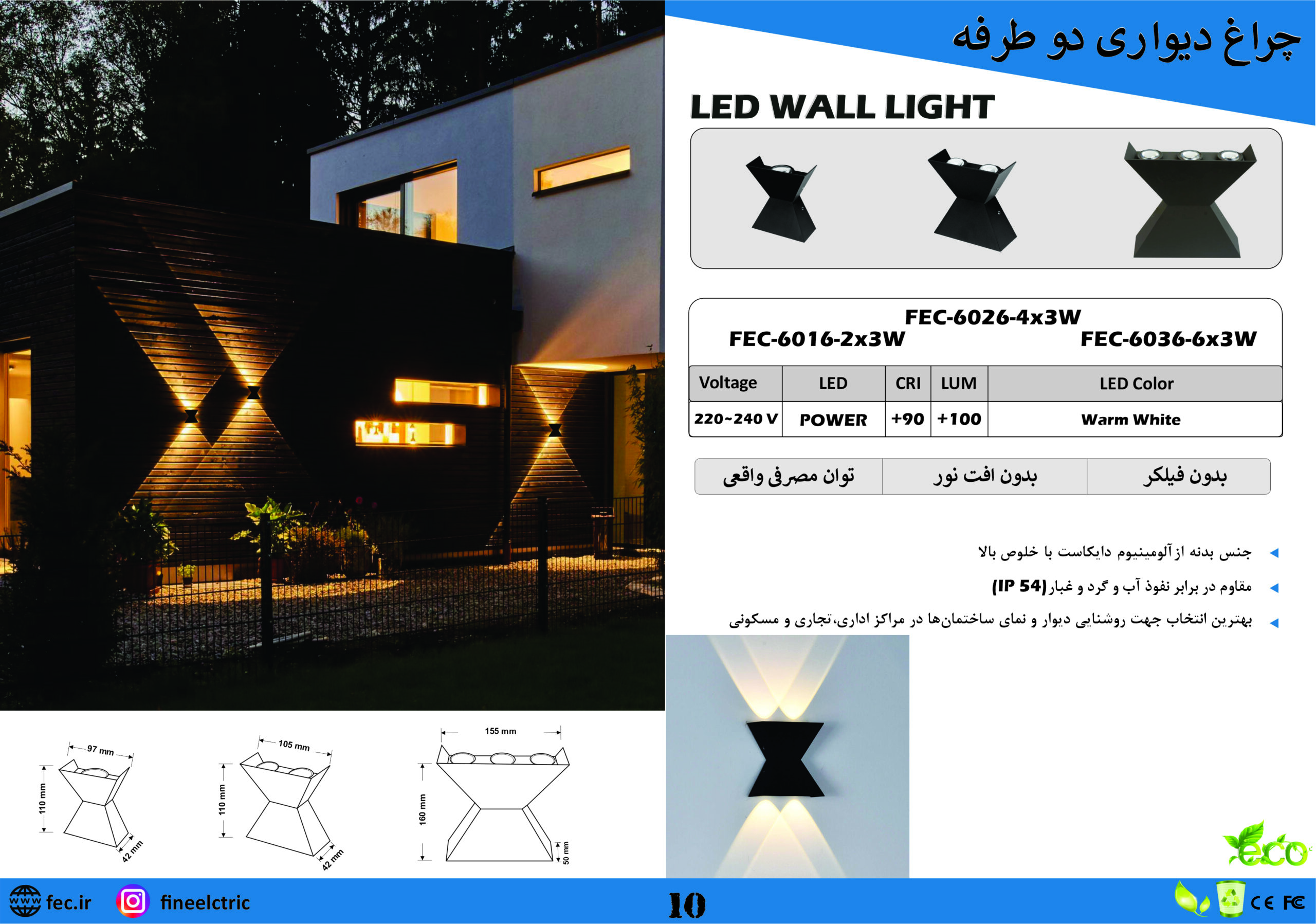 دیواری و دکوراتیو دو طرفه FEC-6026-4x3W