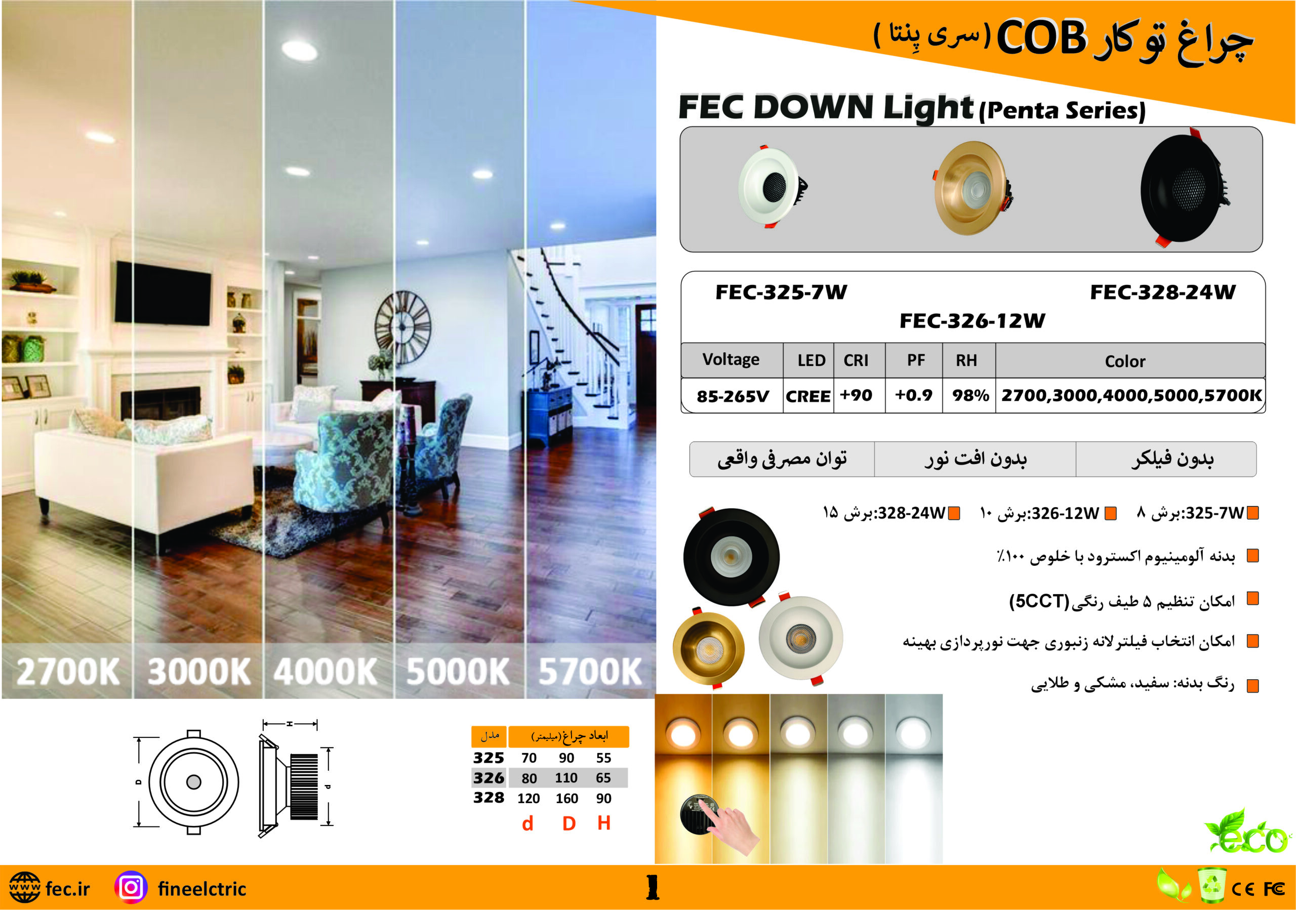 چراغ توکار FEC-325/ FEC-326/ FEC-328 COB (سری پِنتا)