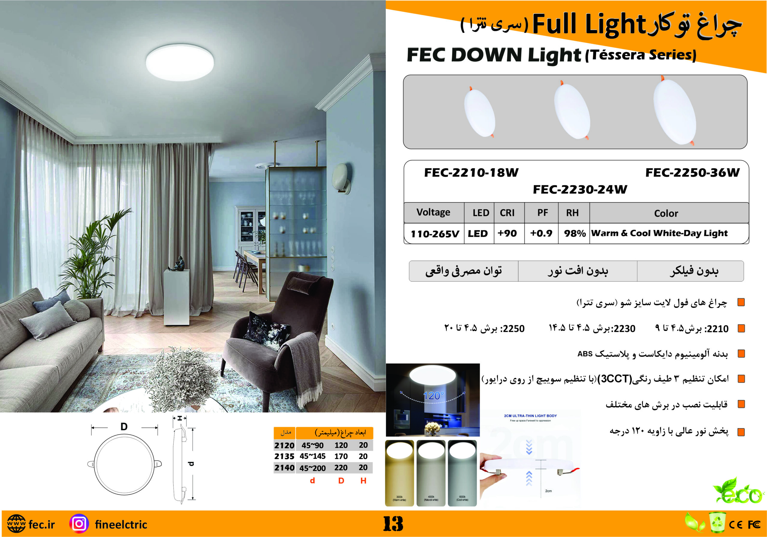 چراغ توکار full light (سری تترا) FEC-2210-18W