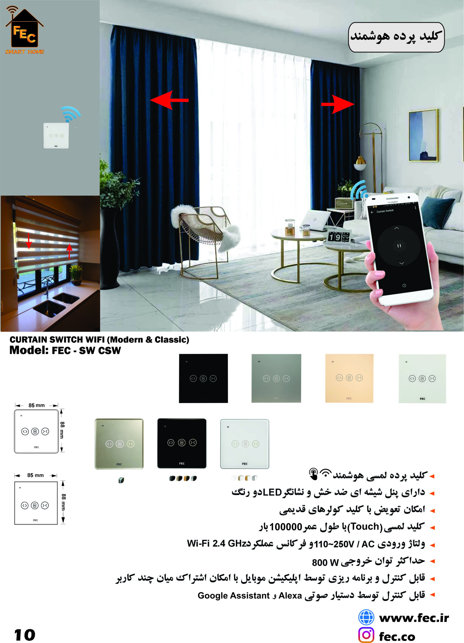 کلید هوشمند پرده طرح مدرن FEC-CSW