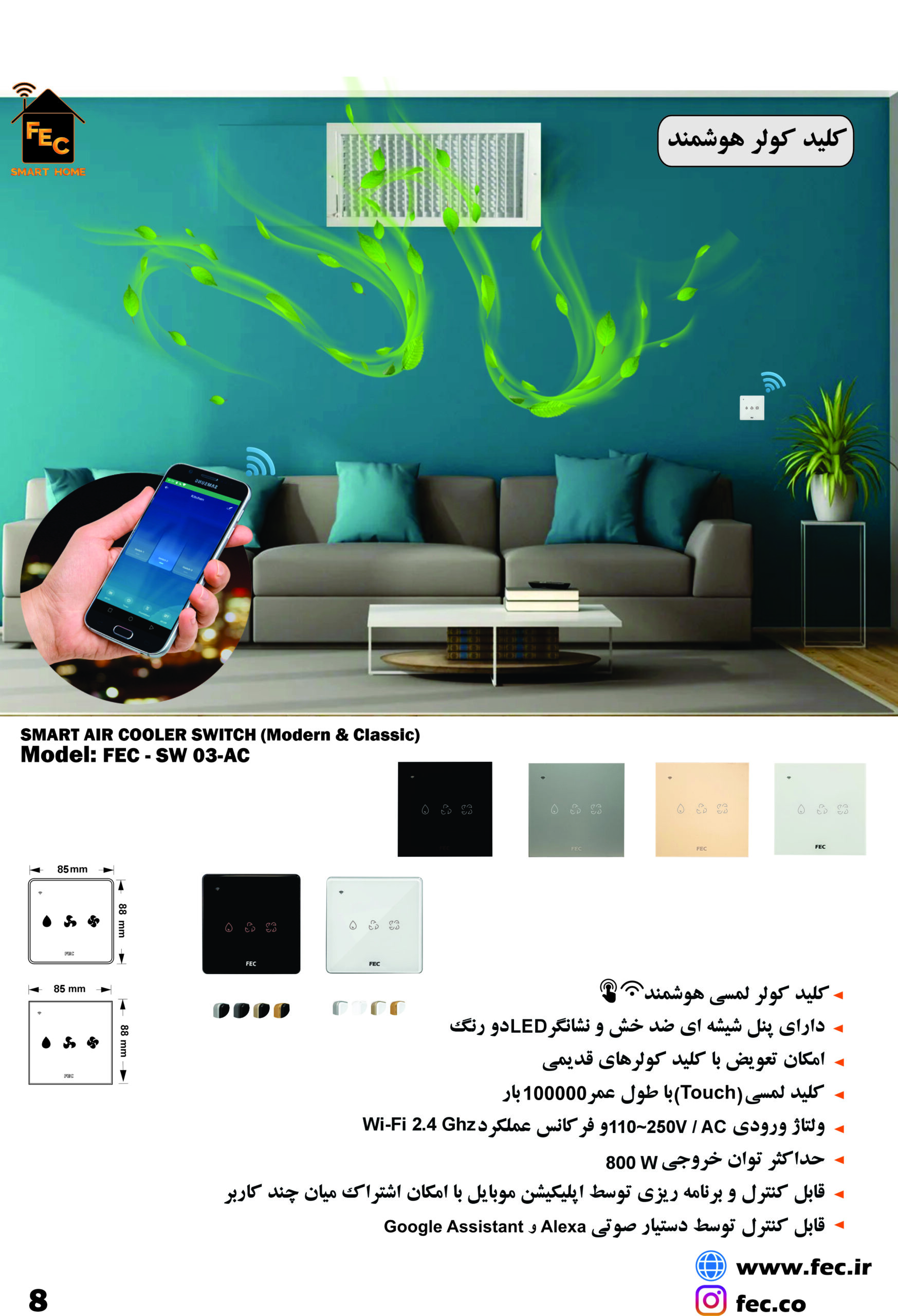 کلید هوشمند کولر آبی طرح مدرن FEC-AC-SW-03